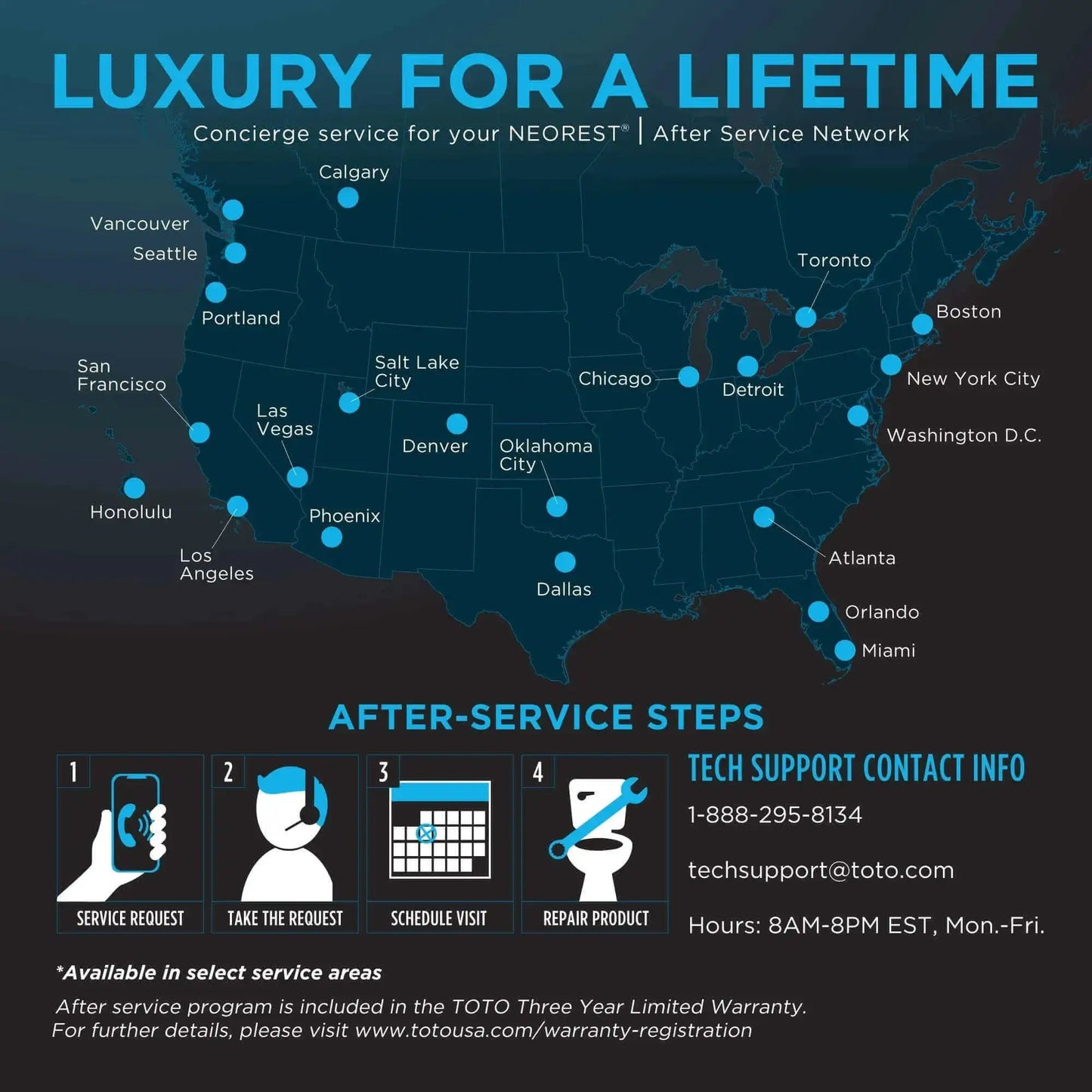 Warranty: Because we are a TOTO Authorized Dealer, you are entitled to their standard 1 Year Limited Warranty.