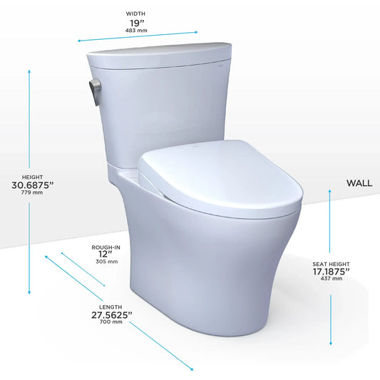 TOTO Aquia IV Cube Two-Piece Dual Flush 1.28 and 0.9 GPF Universal Height Toilet with S7A Contemporary Bidet Seat MW4364736CEMFGN#01
