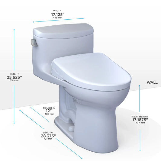 TOTO UltraMax II One-Piece 1.28 GPF Universal Height Toilet and S5 Bidet Seat MW6043446CEFG#01