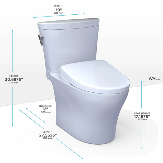 TOTO Aquia IV Two-Piece Dual Flush 1.28 and 0.9 GPF Universal Height Toilet with S7 Contemporary Bidet Seat MW4464726CEMFGN#01