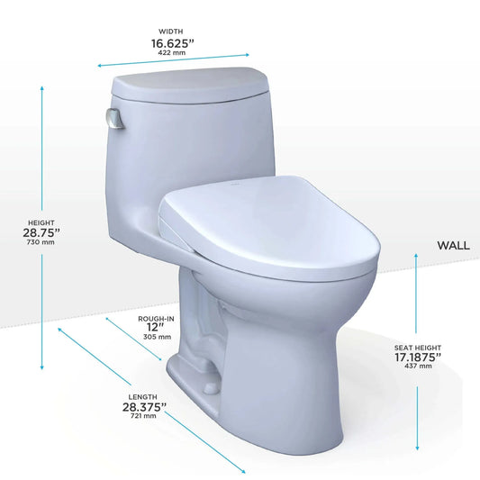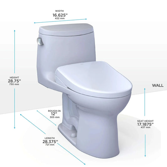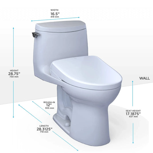 TOTO UltraMax II One-Piece 1.28 GPF Universal Height Toilet with S7 Contemporary Bidet Seat MW6044726CEFG#01