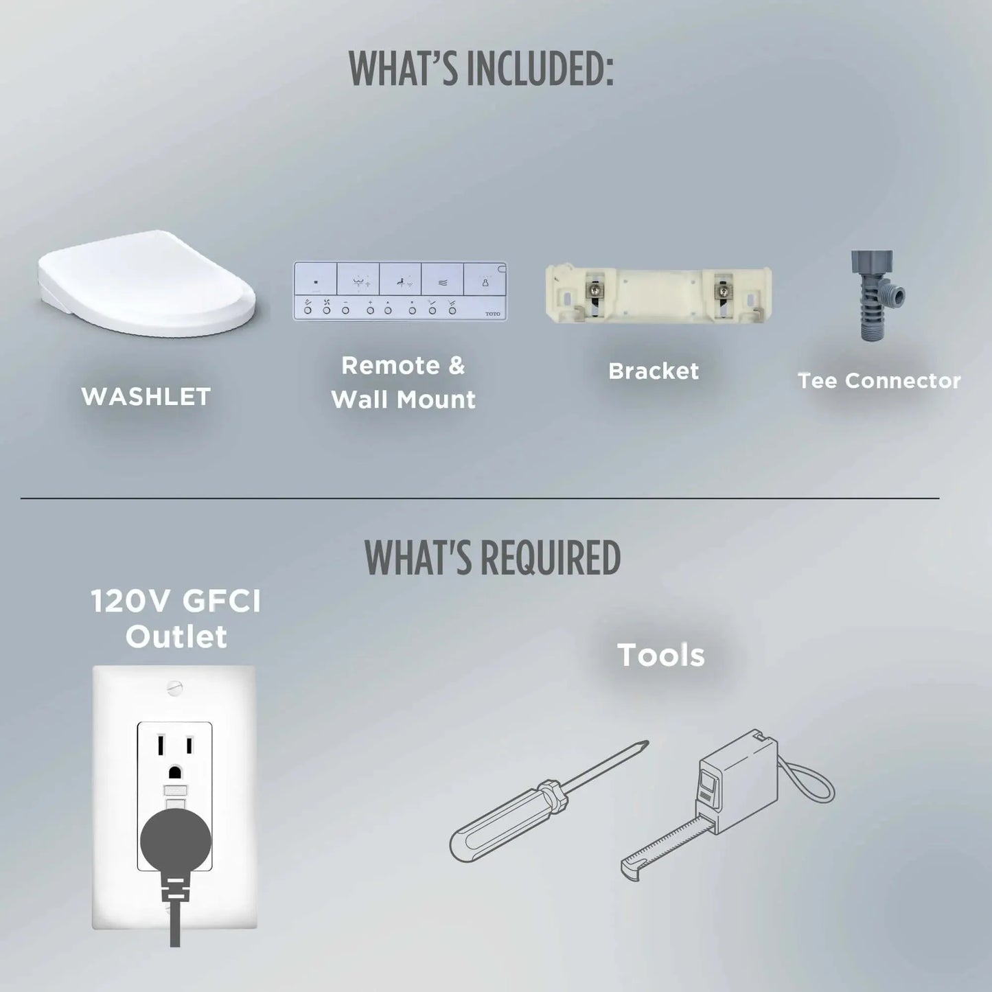 Includes mounting and connection hardware. Newly designed S7 WASHLET models are designed to work with TOTO T20/T40 WASHLET+ ready toilets to achieve a seamless look with no visible connection to your toilet but are also compatible to install on standard elongated toilet bowls.